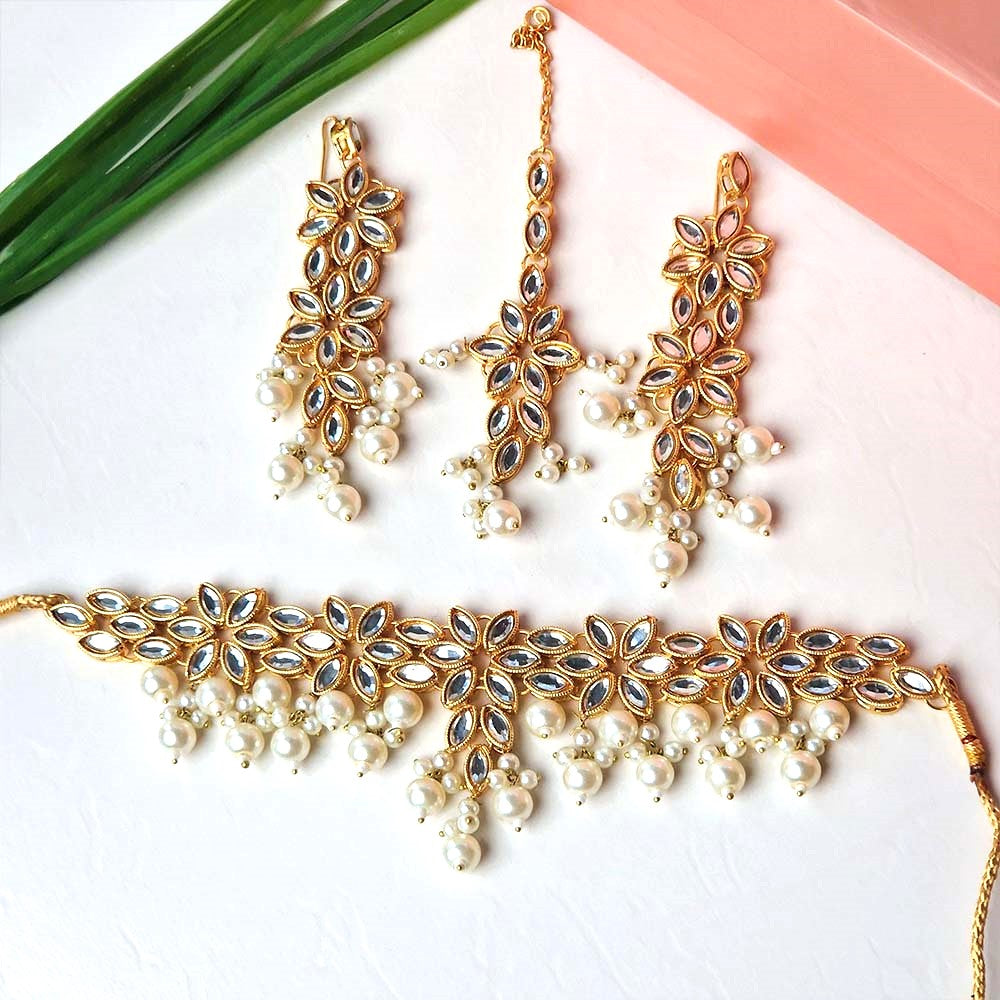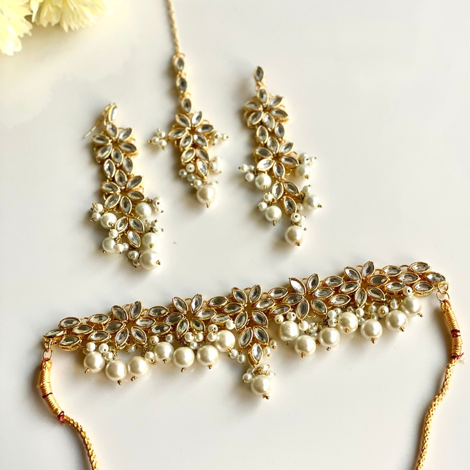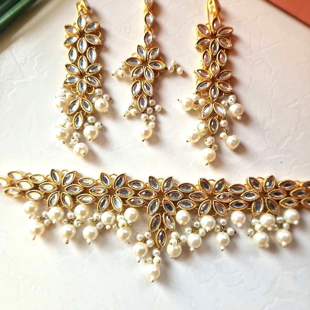 - Leaf-shaped pieces joined carefully in flower shape, adorned with White beads to add elegance to your attire. Find great deals on Jewelry Sets at Alita.pk today!