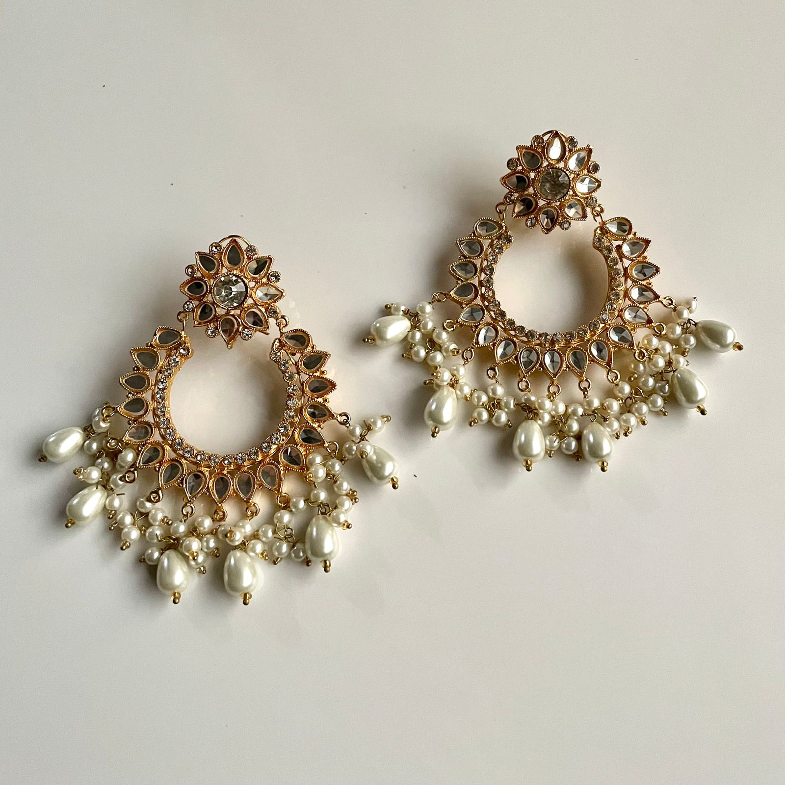Classic Chaandbalis decorated with pear-shaped pearl beads. One of our best-selling jewelry. Check collection of earrings, Traditional, Modern and Jewelry Sets at Alita.pk today. shop now!