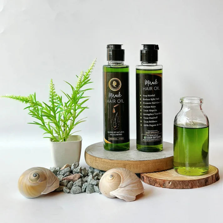 The Miracle Hair Oil combines 11 organic ingredients to promote hair growth, reduce hair fall, improve volume, and combat dandruff. Free from harmful chemicals like silicone, paraffin, and artificial fragrances, it’s the ultimate solution for healthy, strong, and voluminous hair.